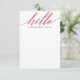 Det här moderna platta anteckningskortet har kalligrafiskriptet "hej" i fantastisk rosa vattenfärg med ditt namn under com.