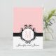 vintage för Rosa, svartvit och vit chic med en modern bröllopsinbjudning. Vackra och mångsidiga bröllopsinbjudningar som du kan ändra bakgrunden till färg till kostym i din bröllop färger.Konst och design av Elke Clarke ©2010. Anpassa med namn, monogram, datum i bröllop och din inbjudan till den här underbara dammen. Du kan också ändra bakgrunden till färg och inte glömma att prova olika papprare val. Var och en lägger till sin egen "titta" utöver designen. Matchande OSA kort med kuvert visas nedan.
