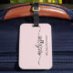Flickaktig Feminint Minimalist Enkelt Rent Rosa Rosa Monogram Namn Signatur Skript Anpassad Personlig Väska Bagage Tag. Denna design med ditt förnamn i en vacker handstils-svans kalligrafisk teckenstil signatur (eller typografi) och fullständigt namn på dammig rosa eller ljus pastell rosa bakgrund. Dessa är lätta att anpassa. Stilsäker feminin present för bröllop, brudshow, söt 16-årsdag, examen och för alla som älskar glamourös stil.