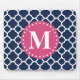 Rosa Monogram Navy Quatrefoil Mönster Musmatta
