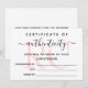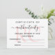 Chicens minimalistiska äkthetsintyg i svartvitt, som du kan lägga till ditt namn eller ditt företag i namn. Anpassa ytterligare med initialerna i blekens rosa. Skrivs ut på ett 5-tums x 7-tumskort.