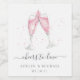 Festive- och elegant-vin-etiketter för förlovningsfest eller bröllop har ett par lysande mousserande vin-glas i vattenfärg, fyllda med rosa bubblor. Anpassa med två linjer anpassningsbar text nedanför, med "bedragare till kärlek" och parets datum namn och bröllop.