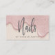 Elegant, trendig affärskort för nageltekniker med rosa-bakgrund och handskrivet calligraphy-skript ''nagel' i grått färg. Anpassa med namn på framsidan och detaljer på baksidan.