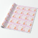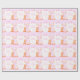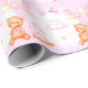 En födelsedagsbild med rosa bakgrund, med en björn med rosa bog runt nacke, en vit rockande häst med vita prickar och rosa- och beige-ballonger
