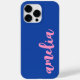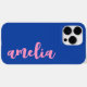 Mobilt omslag med ditt namn i fet, rosa skript på blå bakgrund.