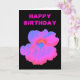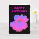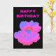 Det här ljuva hälsningskortet innehåller ett foto av en Nasturtiumblomma. Fotot har blivit artificiellt färgad, vilket har lett till en ljusstark rosa med några blåtoner blandade i. Den svarta bakgrunden ger en underbar kontrast. Det finns anpassadets rosa ovanför blomman, på kortets utsida, som säger "Grattis på födelsedagen" men som kan ändras till kostym andra tillfälle. Insidan av kortet är tom.