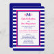 Den här inbjudan efter bröllopet innehåller ett nautiskt tema i shock rosa, marinblått och vitt. Inbjudningsinformationen skrivs ut i shock rosa och marin på en vit bakgrund med marin blå och rosa med marin blå och vit rand-bakgrund. Dina monogram placeras på framträdande plats överst med ditt efternamn monogram och individuella första monogram. Det här är ett underbart nautiskt tema rand efter bröllopsinbjudan. Copyright henishouseofpaper