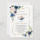 Rosa Navy Blåa blommor Guld Möhippa Tea Party Inbjudningar