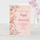 Lycklig bröllop-årskort för syskonbarn och hans fru med elegant rosa vattenfärgen rosor och vår grönery, med faux ro guld mönster.