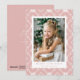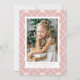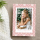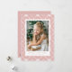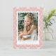 Festivt helgdag-kort med lodräts foto inramat i vitt med rosa och vit nordisk snöflingmönstrad bakgrund. Anpassa det nordiska jullkortet för snöflingor med anpassningsbarna hälsning och namn i rosa. Kortet återgår till visning av ditt personliga meddelande.