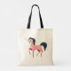 En väska med nordisk vibe. En vacker dårunicorn med svart flödande mane och saga. Vita blomdockor som dras över hela kroppen.