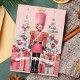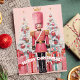 Fira högsäsongen med detta charmiga vykort som visar en rosa nötknäppare som stolt står framför festliga julgranar och vackert inslagna presenter. Meddelandet "God Jul!" tillför en glad touch till den fantasifulla och lekfulla designen, perfekt för att skicka julhälsningar till vänner och familj.
