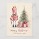 Vår rosa Nutcracker är förtjusande. Han är så söt! Här är han på julscenen i Kväll, komplett med dekorerade helgdag träd och matchande gåvor också. Scenen kommer från en vattenfärgsdesign för vintagen. "God jul!" är hälsning på detta vykort för helgdag, som du kan ändra om du vill. Dessutom går det också att redigera exempelfrasen på motsatt sida. Se till att redigera familjen namn och datumexempel som finns på framsidan av kortet och även på baksidan.