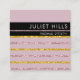 Ett affärskort i kvadrat-trendiget med glittrande rosa och guld rand på rosa. Din kontaktinformation, inklusive mobil, e-post, webbplats och social-medieferens, finns på baksidan. Du kan anpassa ytterligare om du vill ta bort ikoner för media i social som du inte användor, och flytta ikoner om det behövs.