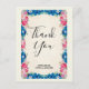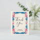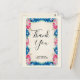 Ett tack från bröllop eller andra tillfälle till vykortet. Designad med ram av rosa och blå vilda blommor, platser och pansier med olika sprit och löv. Färgstark och ljusstark. Mittpunkten är en faux-parchment-bild. Mjuk och summeri. Baksidan har ett meddelande som du kan personlig.