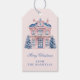 Rosa och blå julhus presentetikett