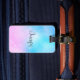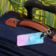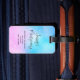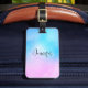 Ett bagagemärke med viskartad bakgrund. Ett system för rosa av pastelltyp och färg med blå övertoning. Lite vita stjärnor spridda runt.. Viktig och magisk design.
