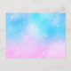 Ett vykort med visuell bakgrund. Ett system för rosa av pastelltyp och färg med blå övertoning. Lite vita stjärnor spridda runt.. Viktig och magisk design.