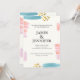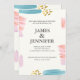 Bröllopsinbjudan till rosa och blått penseldrag för vattenfärg.