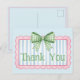 Det här söta tack-kortet har en rosa ram med blå och vita ränder och är prydd med en prickig grön och vit rutig slöja. Personalisera med ditt val av speciell text.