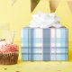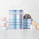 Rosa och blått tartan jul papper. Söt har lagt på presenter.