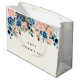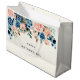 En Mors dag-presentpåse med gräns av söt målad rosa och blå ro och grönt löv. Ställ in på en ljusbakgrund för gulten.