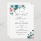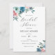 Inbjudningskort för möhippan med rosa av vattenfärg och blåa blommor och grönt. Anpassa med din händelseinformation för att fira den brud som ska vara.
