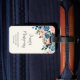 Ett resetagg med en gräns av söt målad rosa och blå ro och grönt löv. Ställ in på en ljusbakgrund för gulten.
