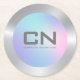 Rosa och blå ombre-cirkel med silver-tonerna gräns. Monogram och text som tillval.