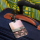 På den här snyggten är bagagetaggen ett dammigt rosa frostat glas struktur tillsammans med ett glimt silver-band där du kan anpassa det så att det blir unikt för dig själv och under det är en rosa och brunt kamouflage mönster för kontrast. Trendigets chic vibes.