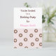 En söt design med mjuk rosa bakgrund med skuggade bruna cirklar med små rosa hjärtan i centrum av dem. Små gröntar pekar ut den här inbjudan. Anpassa med all önskad födelsedagsfest.
