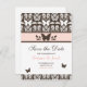 En söt och vacker persikofärgad rosa och chokladbrun färgkombination på spara datum-postkort tillför en touch av lekfullhet till formalismen med detta underbara fjärilmönster. En klassisk twist på ett damaskmönster med fjärilar och blomsterdetaljer. Anpassa det med vad du vill att det ska säga. Klicka på följande länk för att se alla våra vackra Chrissy H.