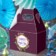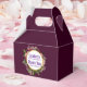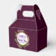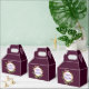 Födelsedag gynnar lådor med mörkens röda burgundbakgrund. Dekorerad med en cirkel med en faux guld-folie gräns som ligger över en söt blommigt bouquet med ro, nejlikor och andra blommor. Anpassa med texten inuti cirkeln.