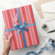 Rosa och Cherry Red Retro Modern Rand Mönster Presentpapper