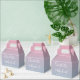Elegant bröllopspresentlåda med chic signatur skriptnamn och speciellt datum på en rosa och dammig blå ombre-bakgrund. Du kan anpassa med ditt eget tackmeddelande på baksidan. Ett perfekt sätt att tacka dina gäster! Designad av Thisisnotme