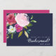 En söt design som gör att du kan be din eller dina favoritflickor att stå vid din sida på din stora dag. Det här bridantkortet frieri ett fet kallt blomkuddar av vattenfärgblommor i Fuchsia och baby/ rosa, med grönt löv. Teckensnittet stil med handbokstäver paras med modernt sans serif-teckensnitt. Bakgrunden är i fast marinblått, och motsatsen är i fuchsisk rosa. Anpassa med namnen.
