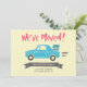 Berätta för dina vänner och din familj att du har flyttat med det här Flytta tillkännagivandet med ord "Vi har flyttat" och en bil som är packad med bagage. Anpassa meddelandet genom att ersätta platshållartexten i mallen för att lägga till nya adress. Om du vill ha fler alternativ, till exempel att ändra teckensnitt, klickar du storlekt på knappen "Anpassa". Den här inbjudan innehåller också en baksida som är mönstrad. *Observera att Zazzle Watermark som visas i zoomförhandsvisningen inte visas på den färdiga tryckta produkten. © Rosewood and Citrus