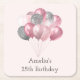 En papper underlägg (en tunn pappersmassong) med en illustration av ett gäng ballonger i rosa och silver grått färg.