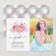 Rosa ros och silver blad studenten-annonseringskort med lyxklädsel i silver, omvänt, präglat med rosa-stenar. Ett foto från porträtt stil rekommenderas.