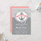 Modern och nyckfull bröllopsdusch-inbjudan med rosa och grå nautiska accenter och mönster.