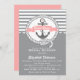 Rosa och grå nautisk bröllopsdusch-inbjudan inbjudningar