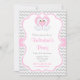 Denna födelsedagsinbjudan har 2 vita svanar med ett rosa hjärta