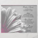 Anpassa den söt Rosan och Grått Blommigt Highlights Bröllop Menu för att meddela detaljerna för den måltid du kommer att vid möhippans luncheon, efter bröllop brunch eller giftermål middag. Den här elegant-anpassningsbarna har ett digitalt utökat svartvit botaniskt foto av en daisy-blommans blommar med ljusa rosa högdagrar tillagda och en silver grått-bakgrund.