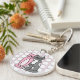 Hand plockade tecknad kattunge med rosa, grått och vitt polka dots.