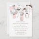 Fira din kärlek-berättelse med vårt anpassade Mason burk bröllopsinbjudan med delikat mason burk, romantiska blommigtar och söta småfåglar. Den här romantiska bröllopsinbjudan är perfekt för rustik, vintage, trädgård eller vår bröllop och tillför en aning vismisk elegans till din speciella dag. Anpassa texten, teckensnittet och välj annat färg så att temat bröllop kan matchas utan problem.