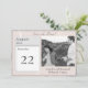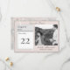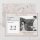 I designen finns en rosa för eleganten och en marbling-effekt i grått som bakgrund till fotot, som visas på högerna. Datum för bröllop visas tydligt som på en daglig kalender. Namn av Bride och Groom samt staden och tillståndet bröllop visas nedan. Rubriken finns i silver-teckensnittet elegant. Utseendet på fintvätt av rosett band övertäcker formgivningen. Omvänd sida har samma marmoreringseffekt med bilden av både menyfliksområdet och den utlösta riset. Designad för att åtfölja uppsamlingen "Rosa and Grått Marble". All text är anpassade.