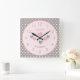 Rosa och grått med polka dots och namn fyrkantig klocka
