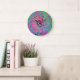 Rosa och grön Abstrakt för kalk, Retro Swirl Stor Klocka