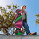 Rosa och grön blomsterflöde mini skateboard bräda 18,7 cm