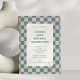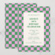 Denna moderna födelsedagsinbjudan har en djärv rosa och grön schackbrädeskant med ren, minimalistisk typografi i mitten. Den lekfulla färgpaletten och det grafiska mönstret ger den en rolig retro-känsla som är perfekt för en stilren 30-årsfirande. Idealiskt för att vara värd för en middagsfest, cocktailkväll eller födelsedagsfirande med vänner. Anpassa texten med dina fests detaljer för att skapa en ljus och minnesvärd inbjudan.